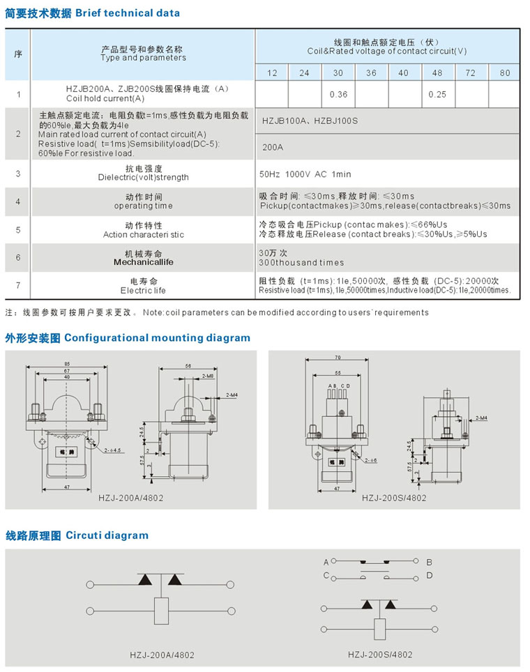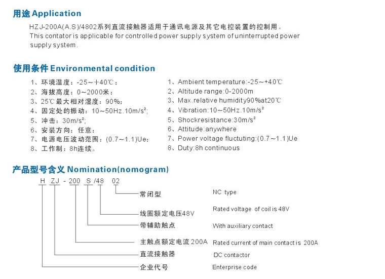 HZJ-200A/S-4802直流接觸器